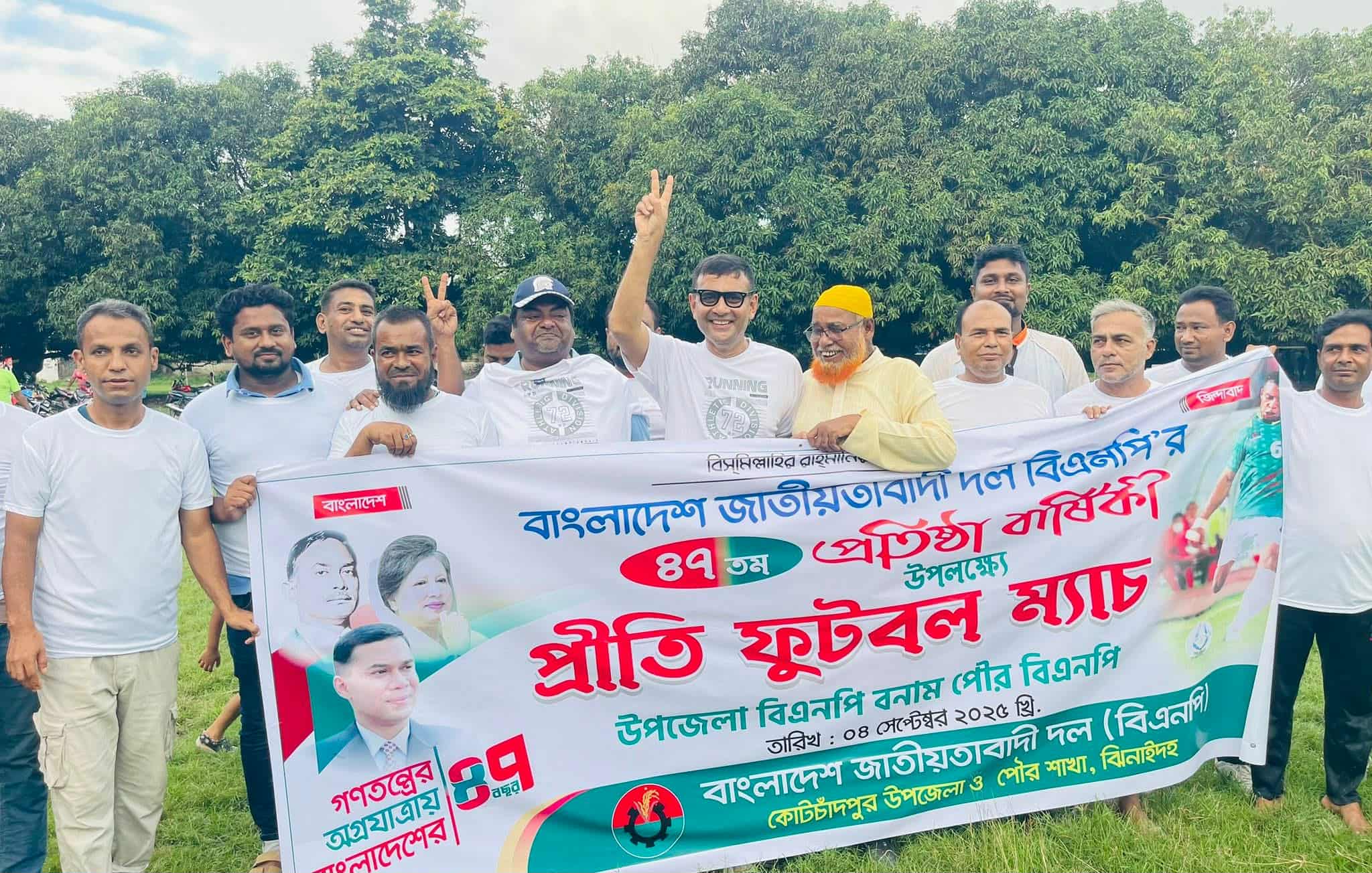 ‎বিএনপির ৪৭তম প্রতিষ্ঠাবার্ষিকী উপলক্ষে কোটচাঁদপুর উপজেলা ও পৌর বিএনপির মধ্যে এক প্রীতি ফুটবল ম্যাচ অনুষ্ঠিত হয়েছে। বৃহস্পতিবার কোটচাঁদপুর সরকারি বয়েজ হাই স্কুল মাঠে অনুষ্ঠিত এই টানটান উত্তেজনাময় লড়াইটি ১-১ গোলে ড্র হয়।