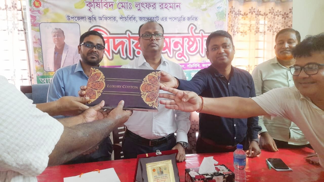 কৃষিবিদ মোঃ লুৎফর রহমানের পদোন্নতি জনিত বিদায় অনুষ্ঠান মোঃ বাবুল হোসেন, পাঁচবিবি (জয়পুরহাট) সংবাদদাতাঃ জয়পুরহাটের পাঁচবিবিত উপজেলা কৃষি সম্প্রসারণ অধিদপ্তরের