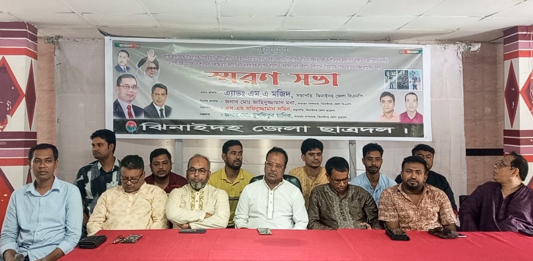 জুলাই গণ-অভ্যুত্থানের শহিদদের স্মরণে স্মরণ সভা করেছে ঝিনাইদহ জেলা ছাত্রদল। জুলাই গণ-অভ্যুত্থানের শহিদ ও শহিদ পরিবারের স্বীকৃতি, আহতদের পুনর্বাসন, জাতীয়