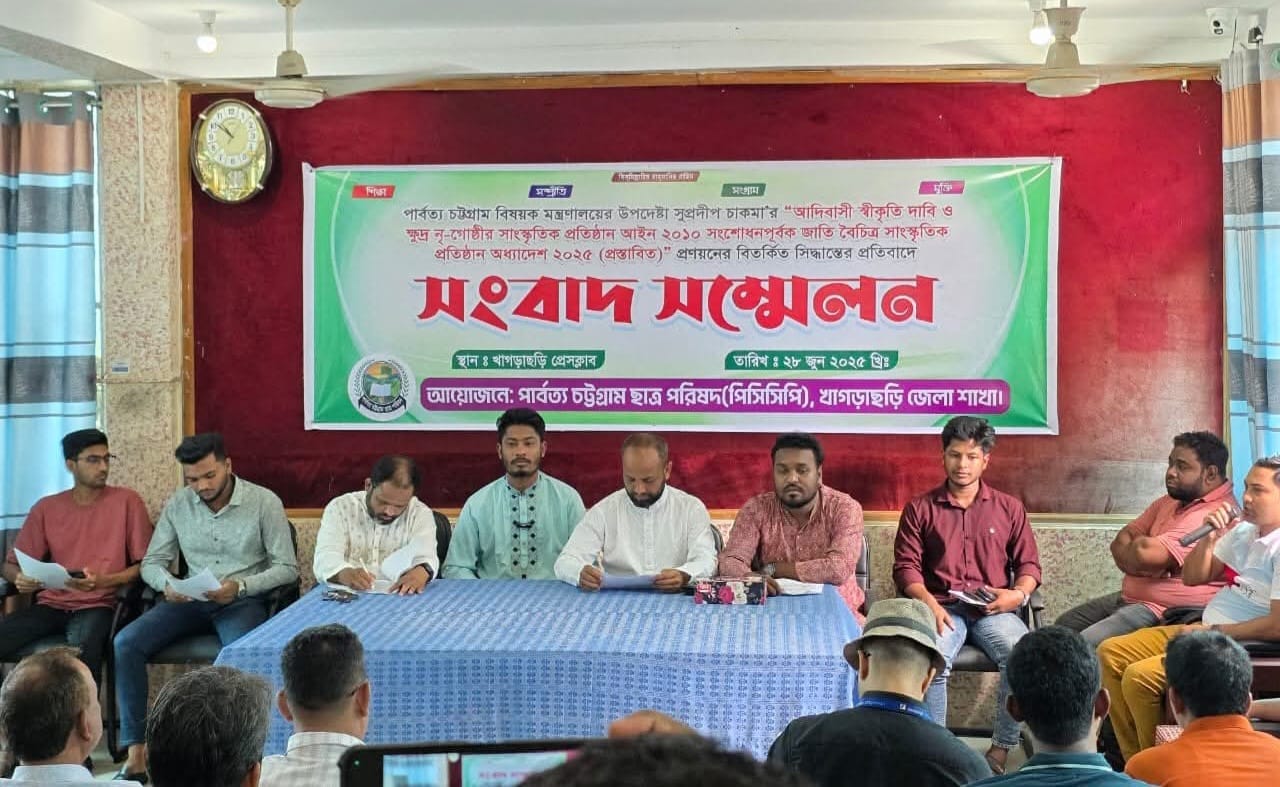 খাগড়াছড়িতে পিসিসিপি’র সংবাদ সম্মেলন: ‘জাতি বৈচিত্র্য সাংস্কৃতিক প্রতিষ্ঠান অধ্যাদেশ ২০২৫’ বাতিলের দাবি