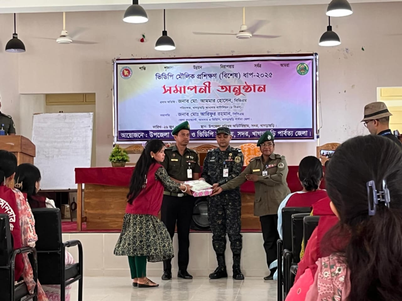 খাগড়াছড়িতে ভিডিপি মৌলিক প্রশিক্ষণের সমাপনী অনুষ্ঠান অনুষ্ঠিত: ৬৪ জন ক্ষুদ্র নৃ-গোষ্ঠীর নারী সদস্যের প্রশিক্ষণ সম্পন্ন