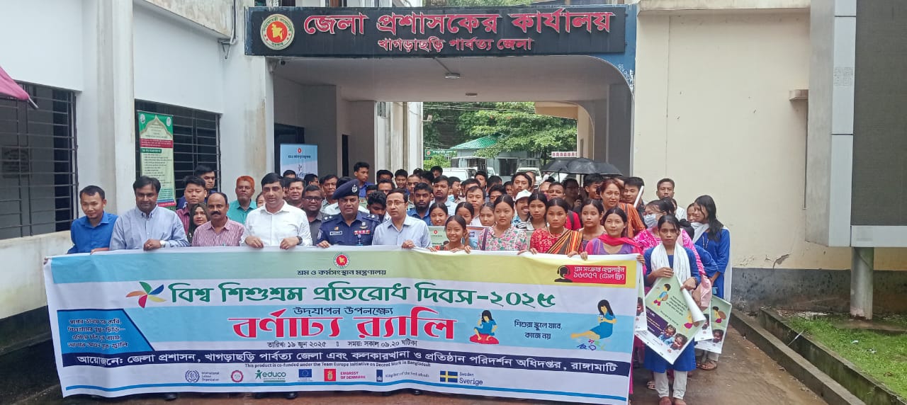 খাগড়াছড়িতে বিশ্ব শিশুশ্রম প্রতিরোধ দিবস-২০২৫ উদযাপন: র্যালি ও আলোচনা সভা অনুষ্ঠিত