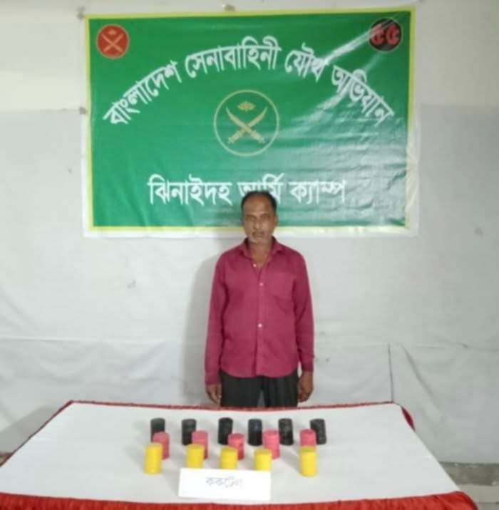 ঝিনাইদহ, ১৭ জুন ২০২৫: ঝিনাইদহের কালীগঞ্জ উপজেলা থেকে ১৬টি ককটেলসহ রাজ্জাক মোল্লা (৫০) নামের এক ব্যক্তিকে আটক করেছে আইনশৃঙ্খলা বাহিনী।