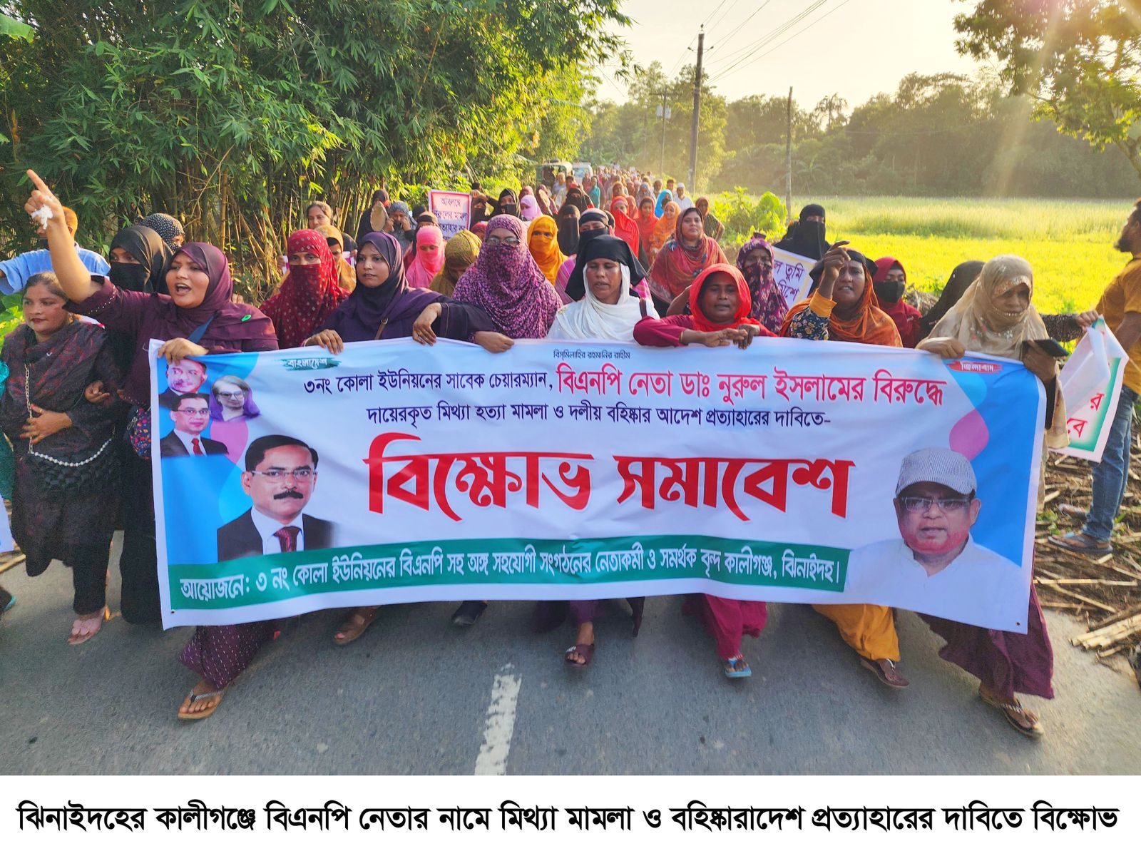 ঝিনাইদহের কালীগঞ্জ উপজেলা বিএনপির সদ্য বিলুপ্ত কমিটির যুগ্ম আহবায়ক নুরুল ইসলামের নামে মিথ্যা মামলা ও বহিষ্কারাদেশ প্রত্যাহারের দাবিতে বিক্ষোভ মিছিল